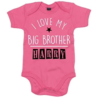 Edward Sinclair 3 6 Months Personalised I Love My Big Brother Design 2 Bubblegum Pink Bodysuit White Glitter & Black Print