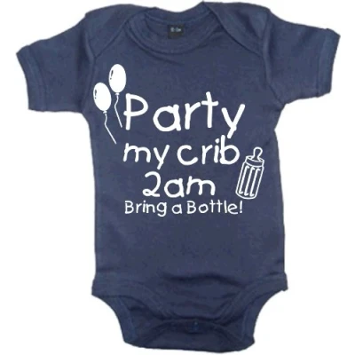 Edward Sinclair 6 12 Months Party at My Crib 2AM Bring A Bottle Navy Baby Bodysuit