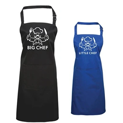 Edward Sinclair Big Chef Little Apron Set Black Adult Royal Child 7/10 with White Prints
