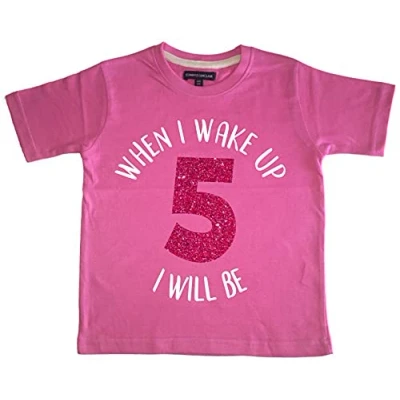 Edward Sinclair Bubblegum Pink 5 6 Years 'When I Wake up Will be 5' Birthday T Shirt with White and Glitter Print