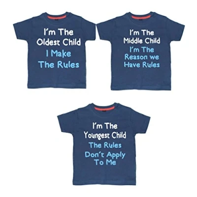 Edward Sinclair Im The Oldest Child Im The Middle Child And Im The Youngest Child Navy T Shirt Brother Set Product Type: Shirt Color: Navy 7 8 Years