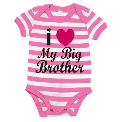 Edward Sinclair Pink and White Striped Bodysuit 0 3months 'I Love My Big Brother' with Pearlescent Black Print