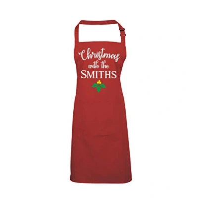 Edward Sinclair red Apron PERSONALISED CHRISTMAS with THE YOUR SURNAME (DESIGN 2) White, and yellow print
