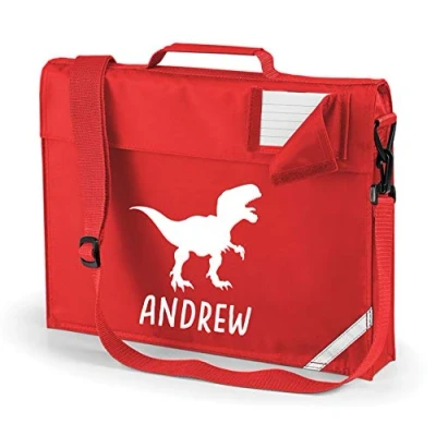 Edward Sinclair Red Personalised Book Bag with STRAPS T REX Name White Print