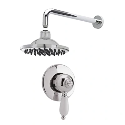 This elegant and traditional shower bundle from nuie, brings together high quality pieces manufactured from brass in a chrome finish, and rounded designs. The bundle includes a concealed thermostatic manual shower valve, arm and fixed head and it saves you money and time, for your brand new shower. The elegant concealed manual shower valve hides unsightly plumbing keeping your bathroom sleek. With a large Victorian inspired lever handle with a white ceramic detailing, this will complement any traditional bathroom design. This valve has full thermostatic control to prevent scalding in case of water shut down. The wall mount curved arm perfectly matches the round fixed shower head, holding it high above to let the water elegantly flow. The shower head is easy to clean and stain rust resistant, keeping it like new and fresher for longer. DIMENSIONS - VALVE - H: 35mm, W: 150mm, D: 135mm. Arm - H: 85mm, W: 60mm, D: 400mm. HEAD - H: 185mm, W: 152mm, D: 421mm 5 year manufacturer's guarantee, Weight: 6.724098991 Pounds, Manufacturer: Nuie