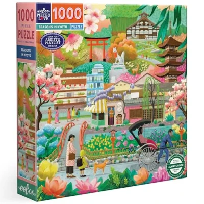 Seasons in Kyoto: a poetic journey through the four seasons of Kyoto. Blooming cherry trees, flaming maples, traditional temples and Japanese life scenes follow in an elegant and immersive composition. A soothing and refined puzzle, perfect for lovers of Japanese culture. An illusion of Jennifer Potter: Jennifer Potter beautifies cultural and natural landscapes with finesse and sensitivity. The detailed style and soft colours make each puzzle a real work of art that can be viewed through the individual pieces. An ideal gift for gifting or giving as a gift: puzzle is a stress relieving activity that relaxes, separates and focuses. The thick, matte parts ensure an optimal assembly experience. Dimensions: 25 x 25 x 5 cm. Puzzle measures 58.5cm x 58.5cm The box contains a coloured model., Manufacturer: eeBoo