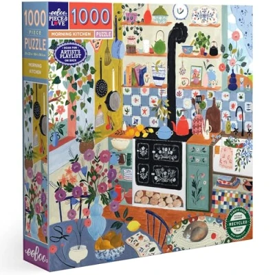 1000 PIECE ADULT Jigsaw Puzzle - This 1000 piece puzzle features a vibrant kitchen from tomorrow. From decorating to fresh vegetables and fruits, enjoy putting the pieces together one by one. 💚 A Waycott Flora work: Flora Waycott is an illustrator who is inspired by the familiar elements of everyday life as well as the wild world around it, focusing on subtle and relevant details. 🎁 An ideal gift to give or give as a gift: puzzle is an anti-stress activity that can relax, unwind and focus. The thick, matte parts ensure an optimal assembly experience. Can be used alone or with multiple people to share pleasant moments with family or friends. A perfect gift for any occasion! Puzzle made from recycled cardboard – Eeboo puzzles are made from 90% recycled cardboard and are printed with vegetable inks to ensure a limited environmental impact. Box size: 25 x 25 cm. Puzzle size: 58.5 cm. The box contains a coloured model. A RESPONSIBLE BRAND AND WOMAN OWNED: Eeboo is a brand created and run by women. The products reflect the commitment to family, community, collaboration, inclusion, respect and the power of honest communication. Working for a healthy planet is a priority. Minimal packaging and plastic components, recycled materials and vegetable inks are used. In 2022, Eeboo is certified by ClimatePartner climate-neutral as a brand., Manufacturer: eeBoo