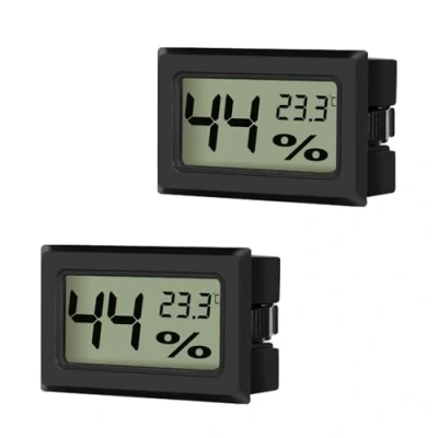 What You Get: 2 digital hygrometer thermometers, each with 2 AG13 batteries. Replace batteries when display dims Measure Range: Temperature gauge range: -50 to 70°C; deviation: ±2°C. Humidity range: 10%~99%RH; deviation: ±5%RH Indoor Humidity Monitoring: Quickly measures humidity and temperature to help adjust humidifiers and dehumidifiers, enhancing living conditions Compact Design: Mini body and square shape allow it to fit inconspicuously. Easy-to-read display with simple and practical functionality Wide Usage: Our LCD digital hygrometer thermometer are ideal for homes, offices, cars, greenhouses, workshops, and air-conditioned areas