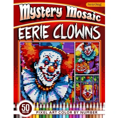 Eerie Clowns Mystery Mosaics Color by Number: 50 Pixel Art Spooky for Halloween