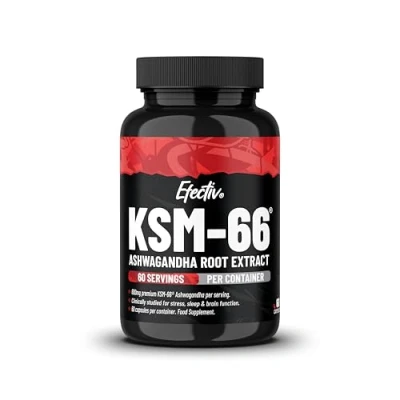 Efectiv KSM 66 Ashwagandha Capsules with 5% Withanolides 600mg Stress Relief & Anxiety Supplement Non GMO UK Made Supports Muscle Recovery Cognitive Function 60