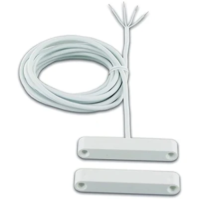 Suitable for mounting in wooden or aluminium windows and doors Reed switch 4-wire with 6000 mm connection cable Contact type: 1-pin contact; switching distance: 19 mm Switching current: max. 0.5 A. Switching voltage: 40 V/DC. Temperature range: -40 °C to + 70 °C (VdS class B) Box contents: 1 inlet reed contact