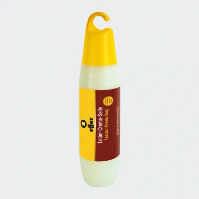 Leather care. Flic. Flac. Finished. The effax® Leather-Cream-Soap in the Flic-Flac bottle to turn and hang up is easy to apply in just the right dosage. Cleans and cares for the leather in one single step – quickly and simply with no water required. Leather-Cream-Soap ensures a pleasant leather surface with a good grip, without any danger of staining other equipment! TIP: All effax® leather care products are to be used without water and are therefore extremely kind to the leather. They make the leather extremely supple and highly durable.