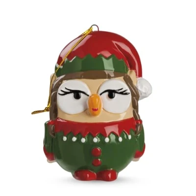 Glazed Ceramic Owl Christmas Tree Decoration Placeholder Elf