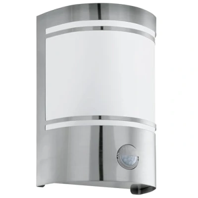 Elegant Cerno outdoor wall light with motion detector The Cerno outdoor wall light consists of a curved stainless steel body and a white satin-finished glass light surface. Thanks to its splash protection (IP44), it is suitable for outdoor use. The light is equipped with a motion sensor and switches on automatically. This illuminates areas that are difficult to see and deters uninvited guests. The integrated twilight sensor measures the ambient brightness and only switches on the light when it is really necessary. Thanks to its timeless design, the wall light fits into a wide variety of outdoor styles. Whether on the patio, balcony or house entrance, it illuminates every area safely, reliably and glare-free. - Sensor angle 90° - Sensor brightness: 2 - 2000 lux - Sensor duration: 10 - 240 sec - Detection range: 7 m