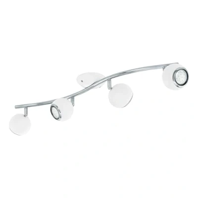 The ceiling lamp made of metal in white and chrome with four rotatable and swivel spots blends seamlessly into the modern trend The ceiling light provides an attractive design feature in any room – whether in the kitchen, living room, hallway or bedroom This product is an encompassing product with a light source of energy efficiency class F; encompassing products are luminaires that can be disassembled for separate inspection of the included light source(s)