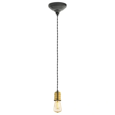 The decorative pendant lamp made of steel in black and gold with a black fabric cable fits seamlessly into trends such as vintage and industrial No bulb included in the scope of delivery; The filament LED bulb is available separately under EGLO 110055 Dimensions: Height: max 200 cm, Diameter: 12.5 cm