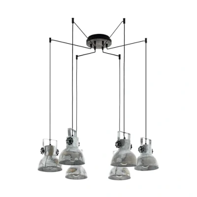 Eglo 49732 Barnstaple 6 Pendant Cluster Light in Used Look Zinc and Brown Patina Wood