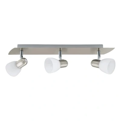 The ceiling lamp made of metal in matte nickel with two adjustable spots made of frosted white glass fits seamlessly into the modern trend The ceiling light provides optimal lighting in any room with its appealing design – whether in the kitchen, living room, hallway or bedroom Dimensions: length 50 cm, width 7 cm