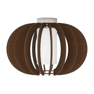 The decorative ceiling lamp made of steel in matte nickel with a round lampshade of brown wooden slats and an inner glass body in white fits seamlessly into trends such as modern and vintage The ceiling light features a distinctive design that serves as a highlight in any room – whether in the kitchen, living room, dining room, hallway or bedroom Dimensions: Height 27.5 cm, diameter 40 cm