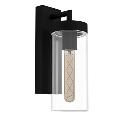 This weather-resistant outdoor lamp is splash-proof (IP44). This means that it is safe to use indoors as well as outdoors such as e.g. garden, terrace, garage, balcony, garden shed, paths or driveways The trendy, clear glass gives an insight into the filament bulb (not included). Illuminated and unilluminated, this light creates a beautiful ambience in your outdoor area The light bulb shown is not included and sold separately under EGLO 11679 Suitable for any bulb with E27 socket, maximum wattage per socket 60 W Dimensions: height 34 cm, projection 15.5 cm, length 11 cm