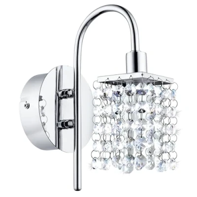 The decorative LED wall light made of chrome-coloured metal with numerous suspended clear crystals is splash-proof (IP44) and therefore ideal for bathroom lighting Thanks to its appealing design, the bathroom lamp harmonises with almost any style, whether classic, modern or elegant This product is a surrounding product with a light source of energy efficiency class F; surrounding products are luminaires that can be disassembled for separate inspection of the contained light source(s)