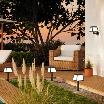 Solar-powered LED pedestal light with ground spike The Altilia solar LED pedestal light combines modern design with intelligent lighting technology. The light, framed in black plastic, blends seamlessly into any outdoor design and offers an energy-saving lighting solution thanks to its integrated LED light source. The integrated sensor automatically activates the light when movement is detected, ensuring not only convenience but also safety outdoors. Mobile use thanks to integrated ground spike and a highlight for any property - Lighting time with fully charged battery: approx. 6-8 hours - Integrated 2200 mAh lithium-ion battery - Motion sensor: detection range 6 m, detection angle: 120° - Installation height: 2.5 m - Brightness threshold adjustable: 100 % or 30 %