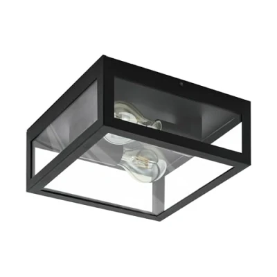 Eglo Amezola 2 Flame Flush Ceiling Light, Industrial and Vintage Design Lighting, Living Room, Kitchen Bedroom Wall Lamp, Black Steel Clear Glass Light Fixture, E27 Socket, IP44