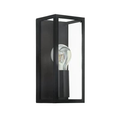 AmazonThe decorative wall sconce is composed of a black metal frame and clear glass surfaces, is splash-proof (IP44) and fits seamlessly into trends like industrial and vintage styles The filament LED light bulb is not included in the scope of delivery and is available separately (product EGLO 110051) Dimensions: length: 11 cm/ 4.3 inches, height: 26 cm/ 10.2 inches, projection: 10 cm/ 3.9 inches
