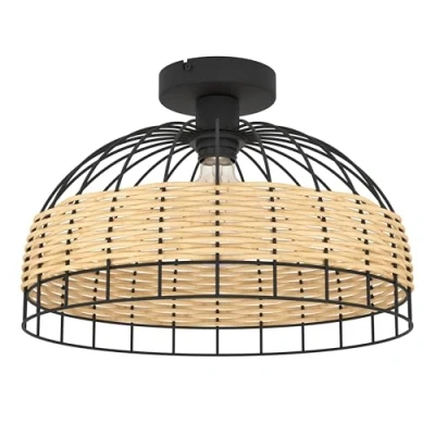 AmazonThe decorative ceiling light made of black steel and a lampshade made of a wire frame with woven rattan stripes in natural colours blends seamlessly into trends such as vintage and boho When the light is switched on, the lampshade creates a fascinating interplay of light and shadow With its special design, the ceiling light offers a highlight in any room - whether in the kitchen, living room, dining room, hallway or bedroom No bulb included; the filament LED bulb is sold separately under EGLO 110052; suitable for any bulb with E27 socket, maximum 60 watts per socket; dimmable depending on the bulb used Dimensions: height: 26.5 cm, diameter: 38 cm