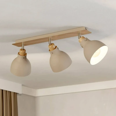 Amazon MarketplaceThe ceilling light fitting consist of three orientable sand-coloured metal lampshades and is combined with a ceiling canopy in natural-coloured oak look The light bulb is not included in the scope of delivery Dimensions: length: 74.5 cm/ 29.33 in, width: 14.5 cm/ 5.71 in, height: 23.5 cm/ 9.25 in