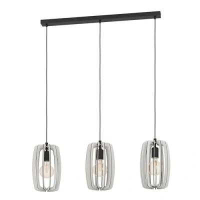 AmazonThe pendant ceiling light fixture features three round, long lampshades made of sand coloured wooden slats, black fabric cables and a long metal ceiling canopy and blends seamlessly with modern interior styles When the fancy ceiling lamp is switched on, the wooden slats of the shades create a fascinating interplay of light and shadow Dimensions: length: 89 cm/ 35 in, width: 19 cm/ 7.5 in, height: 110 cm/ 43.3 in