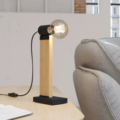 Eglo Bedside lamp Bailrigg, Decorative Light Fixture, Living Room and Bedroom Lighting, FSC100HB, Black Metal Natural Coloured Wood, E27 Socket, 13 in