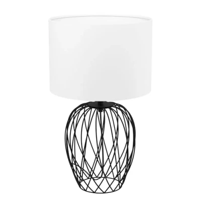 EGLO Bedside lamp Nimlet, Scandinavian style table light made of white fabric and black metal, living room lighting with switch, E27 socket