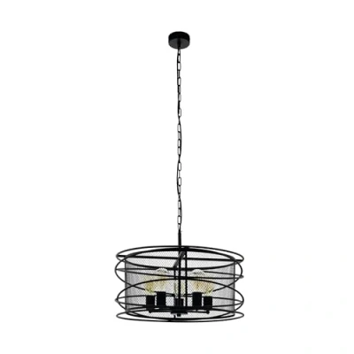 The decorative lampshade made of a wire mesh and a curved metal frame in black blends seamlessly with trends such as industrial, vintage and retro When the pendant lamp is switched on, the lampshade creates a fascinating combination of light and shadow With its special design, the pendant lamp offers a highlight in any room – whether in the kitchen, in the living room or in the dining room above the dining table The filament LED bulbs are not included and are available separately under "EGLO 11022" Suitable for any bulb with E27 socket, maximum 60 watts per socket. Dimmable depending on the bulb used Dimensions: height: max. 150 cm (link chain of the lamp can be shortened), diameter: 58 cm