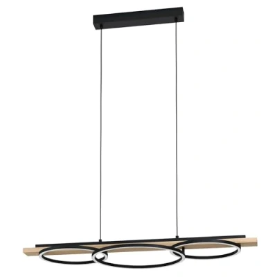 Eglo Boyal 3 Lamp LED Pendant Lamp, Dimmable Dining and Living Room Ceiling Light, Metal, Wood Plastic Coloured in Black, Brown White Hanging Lighting, E27 Socket