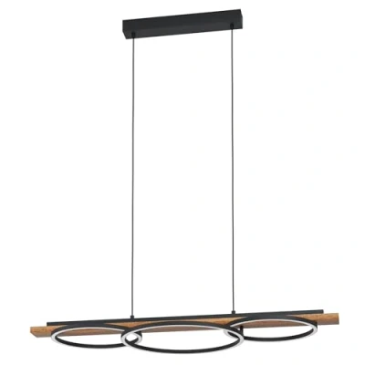 Eglo Boyal Dimmable LED Pendant Lamp, Dining and Living Room Ceiling Light Fixture, Metal, Flamed Wood Plastic Hanging Lighting Coloured in Black, Brown White, E27 Socket