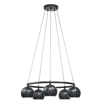 The pendant light made of black steel with a round metal ring as a base support and the lampshades with cut-out pattern and an inside in white blends seamlessly into trends such as modern and minimalism elegantly With its special design, the pendant lamp offers a highlight in any room - whether in the kitchen, in the living room or in the dining room above the dining table No bulb included; the LED bulbs are sold separately under EGLO 11419 Suitable for any bulb with E14 socket, maximum 40 watts per socket. Dimmable depending on the bulb used Dimensions: height: max. 110 cm, diameter: 69 cm