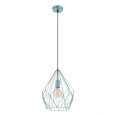The most striking feature of the Carlton pendant lamp is its intricate wire mesh lamp shade, crafted from filigree metal struts arranged in a diamond shape. This unique design not only enhances the visual appeal of the lamp but also plays a significant role in creating a fascinating interplay of light and shadow when illuminated. The mint-colored wire frame forms a colorful exterior that accentuates the light source, producing a delightful light pattern through the individual metal struts.