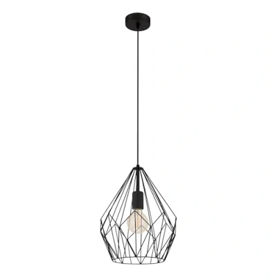 Black pendant lamp Carlton with cage shade Designed from black steel struts in an open shape, the shade of the pendant lamp Carlton leaves the view of the bulb visible. Therefore, a decorative bulb is recommended for use in the E27 socket - for example, a globe lamp with clear or golden glass and LEDs arranged in a special look. Cage pendant lamp Carlton in vintage look fits over the dining room table, in the kitchen over a table or counter, or even over the coffee table in the living room.
