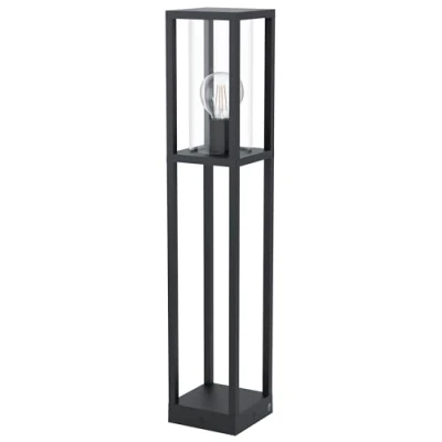 The decorative outdoor floor lamp is made of a black cast aluminum metal frame and a clear glass cylinder The weather-resistant outdoor light is splash-proof (IP44); so it is safe to use outdoors such as garden, driveway, paths or entrance area The vintage design of the floor lamp blends stylishly into the outdoor area and creates a welcoming atmosphere No bulb included; the filament LED bulb is sold separately under EGLO 110001; suitable for any bulb with E27 socket, maximum 40 watts per socket Dimensions: height: 79.5 cm, length x width: 15 cm
