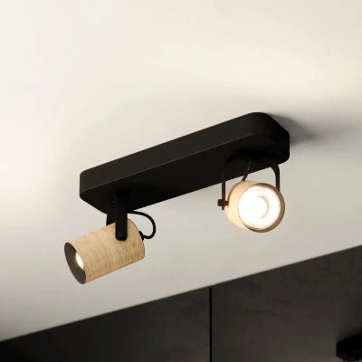 EGLO Cayuca downlight, black/wood decor, 2 bulb