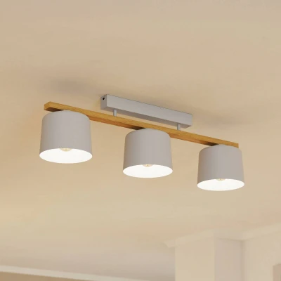 Eglo Ceiling Light Fitting Mariel, 3 spot lamp, Scandinavian Style Fixture Made of Grey Steel and Wood, FSC100HB, semi Flush Living Room Lighting, E27 Socket
