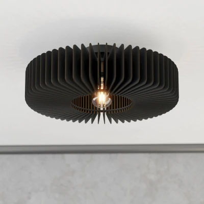 Eglo Ceiling Light Fixture Palombaia, Flush lamp, Round Living Room and Bedroom Lighting, Black Wood, E27 Socket, Ø 20"