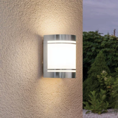 Amazon MarketplaceThis weather-resistant outdoor lamp is splash-proof (IP44). Thus, safe use outdoors such as garden, terrace, garage, balcony, garden shed, paths, driveways or entrance areas The housing of the wall lamp is made of sturdy high-quality stainless steel. Stainless steel stands for durability, protects against rust and gives the light an elegant look The modern and timeless design of the wall light blends stylishly into your outdoor area and creates a welcoming atmosphere Bulb not included Suitable for any bulb with E27 socket, maximum wattage per socket 40 W; dimensions: height: 16.5 cm, length: 14 cm, projection: 10.5 cm
