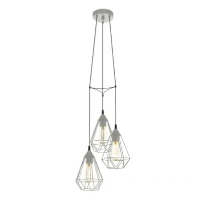 The hanging living room lamp consists of three matt grey wire shades in a diamond shape, suspended at different heights from a round canopy With its attractive design, the pendant light fixture is a highlight in any room – whether in the living room, in the dining room above the dining table or in the kitchen above the kitchen island Dimensions: Height: 110 cm, diameter: 31 cm