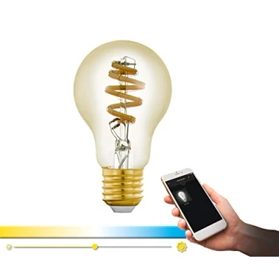 EGLO Connect 12578 LED E27 Light Bulb, Smart Home Vintage Spiral 5.5 Watt, 400 Lumen, Dimmable, Colour Temperature Adjustable, Bulb A60, Diameter 6 cm