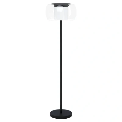 The free standing corner floor lamp from the smart home range with its round clear glass body with an opal glass cylinder inside, combined with a black metal element on the head, blends seamlessly into modern interiors; The upright lamp with its simple design creates the right mood in any space, whether it’s in the bedroom, living room or dining room The indoor floor lighting is controlled using a free app or the separately available remote control ; The free AwoX Smart Control app offers other useful features via Bluetooth such as brightness adjustment, timer operation, night light, presence simulation and twilight simulation; Away-from-Home Wifi control, with Amazon Alexa (Echo, Echo Dot) and Google Home voice command - the EGLO Plug Plus (available separately) is required for this purpose Dimensions: height: 152.5 cm/ 60 in, diameter: 40 cm/ 15.7 in; This product is a containing product with a light source of energy efficiency class F; containing products are lighting fixtures that can be disassembled for separate inspection of the containing light source(s)