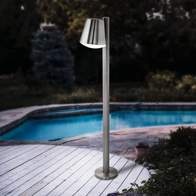 Robust stainless steel and modern control – Caldiero-C path light The beautifully designed Caldiero-C path light made of robust stainless steel is equipped with a replaceable bulb that emits warm white light downwards. Hidden behind an opal white diffuser to protect it from wind and weather, the light illuminates the surroundings without glare and provides protection against potential trip hazards in the dark. With the help of modern Bluetooth technology, the Caldiero-C path light can be switched and dimmed using a matching remote control. More functions are available with the free app, which allows several lights to be grouped together or a practical presence simulation to be set up. For added safety on frequently used paths or outdoor areas, the Caldiero-C path light can be retrofitted and connected to the matching Connect Sensor. This acts as a motion detector and switches the path light immediately when motion is detected, with the brightness and duration specified in the app. Functions / Compatibility - Modern Bluetooth technology with protected network - Controllable via the free Smart Control app by AwoX - Can be combined with the Connect Sensor (see accessories) - Controllable with the matching EGLO connect remote control (see accessories) - Dimmable