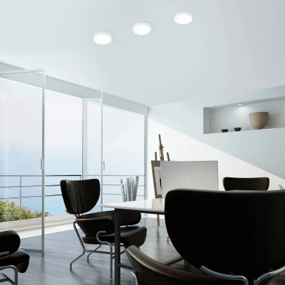 Fueva-C - round LED ceiling light, controllable via app or remote controlVariable lighting in a wide variety of light colors and brightness levels can be realized with the Fueva-C LED ceiling light. The control can be done with the app available for IOS and Android via a smartphone or tablet or also via a remote control. The round, flat LED ceiling light Fueva Connect enables white lighting, which can be continuously adjusted in the range from warm white (2,700 K) to daylight (6,500 K), or colored lighting in one of over 16 million different shades. Whichever light color is selected, the light can be continuously dimmed in each setting. The light can even be controlled at home while on the move. Design and save your own lighting creations, combine individual lights into groups, change colors at different speeds - this and much more can be realized with the Fueva Connect LED ceiling light via the downloaded app using a smartphone or tablet.The round LED surface-mounted luminaire made of cast metal with a satin plastic diffuser can be integrated into almost any room concept. A remote control for alternative control without smartphone or tablet can be ordered as an accessory. Also with this variant of operation, the various white and colored light colors can be selected, the brightness can be regulated continuously, color transitions and speeds can be set or stored favorites can be selected. The remote control can also be integrated in the app as a group, whereby the group can be freely defined (individual luminaires or rooms).