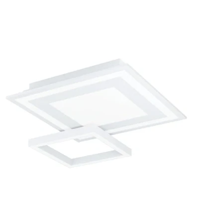 Lights.coSavatarila-Z LED ceiling light, controllable by App and voice, RGBW The Savatarila-Z LED ceiling light has a modern geometric design, consisting of two square frames fitted with smart controllable LEDs. Die can produce coloured and white light in different colour temperatures from warm white to daylight and provide the right lighting at all times. Thanks to ZigBee technology, the light can be controlled and dimmed using an app, voice assistant or even a classic remote control. Functions / compatibility: - controllable with the free AwoX HomeControl app - compatible with smart home systems from other manufacturers that use ZigBee 3.0 - direct connection with Amazon Echo and Google Home possible - increased range thanks to additional Bluetooth Mesh - compatible with all items in the EGLO connect-c Bluetooth series - can be controlled with a suitable remote control even without internet access (see accessories)